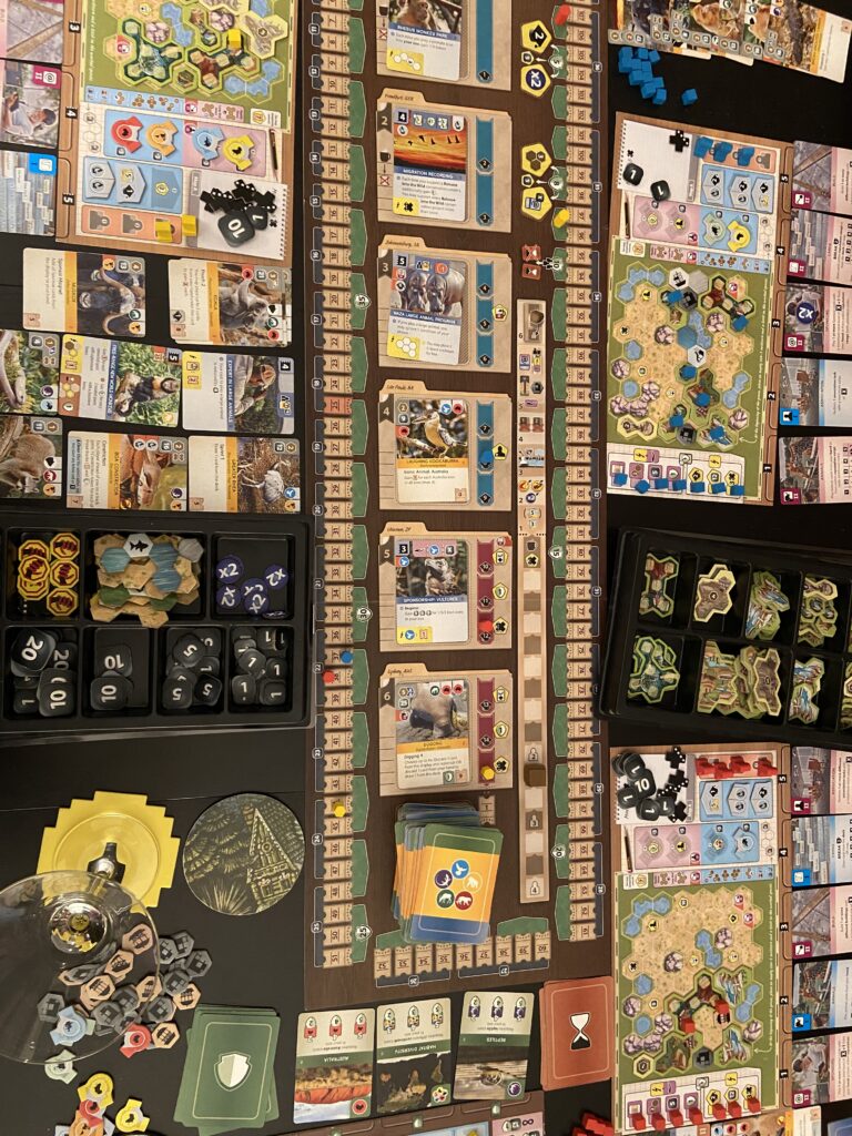 According to Boardgamegeek, Ark Nova is the third best boardgame in the world, sharing the top of the ranking list with other similarly complex games. The players run rival zoos, seeking to best each other through the proper balancing of popularity and support for conservation efforts. It took us two hours to learn enough rules that the game was flowing smoothly and it was possible to make informed decisions. Total playtime was six and a half hours.