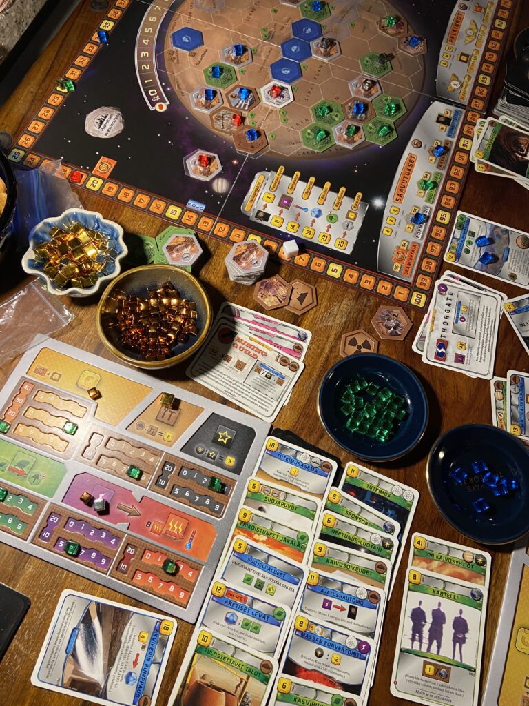 The version of the game we played was the Finnish translation from Lautapelit.fi. That makes it the first Finnish-language game I’ve played during this project.