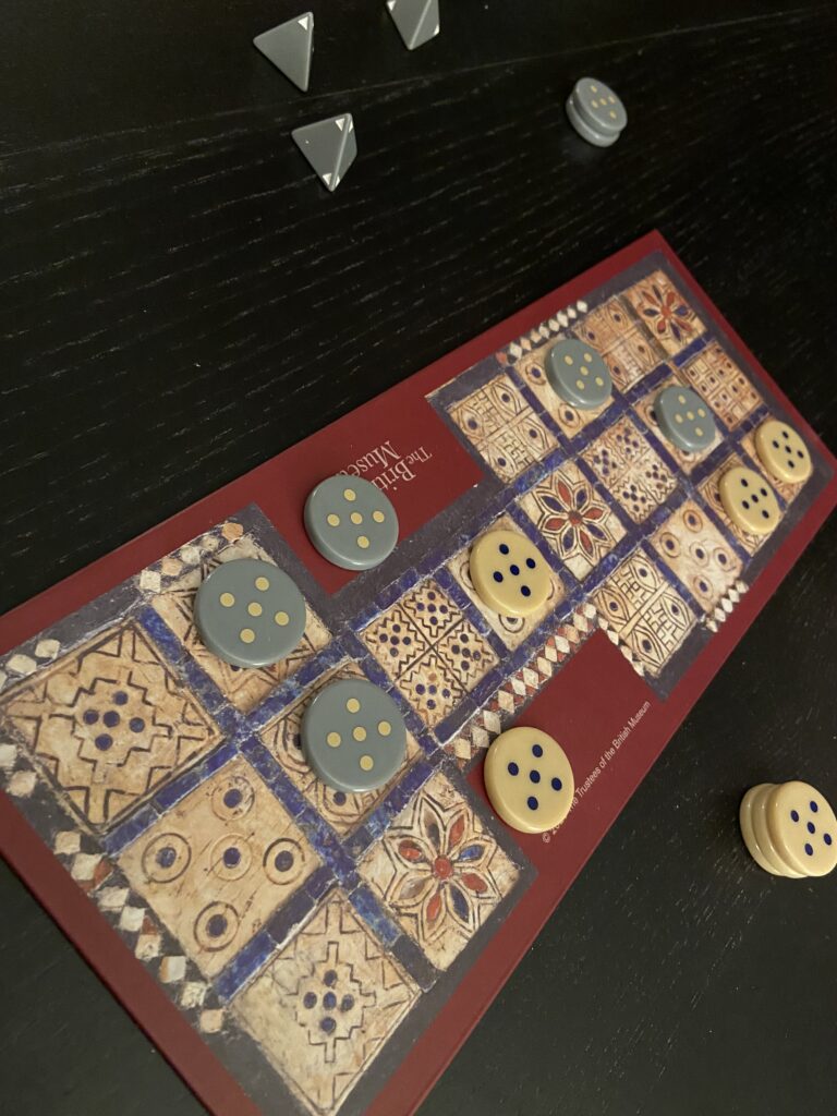 The Royal Game of Ur is a boardgame played in ancient Mesopotamia and which spread all over the world. The version I have is published by the British Museum and is a reconstruction of the game mechanics devised by the curator Irving Finkel based on surviving materials. It’s hard to say whether the game was originally played like the copy I have but it’s still wonderful to imagine this same game having been played across over four milleniae.