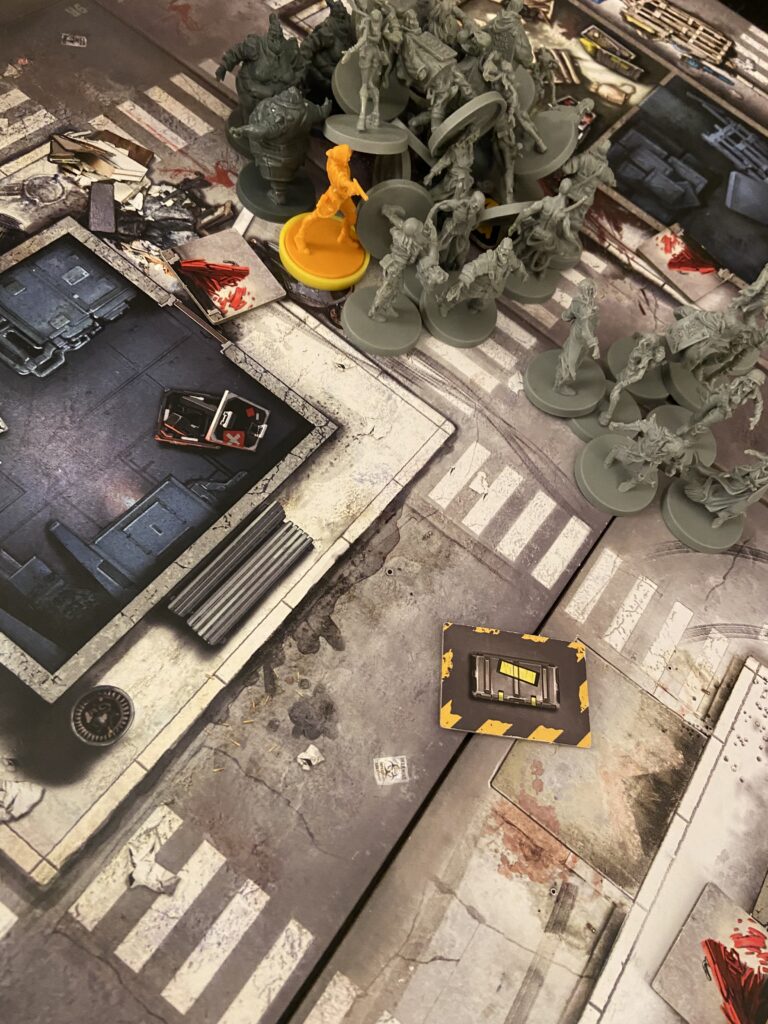 As each player’s character kills zombies and takes objectives on the map, they gain experience. It grants access to more abilities but also eventually increases the danger posed by the zombies. The characters are stronger and the hordes are bigger in a cycle of escalation that may result in huge piles of zombie minis crammed into one of the map’s zones.